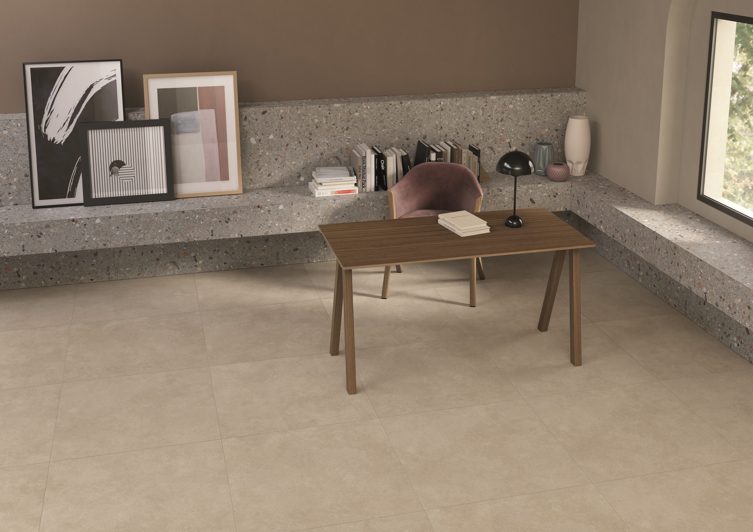 Goldenbrook findet seinen idealen Platz in privaten und gewerblichen Räumen von großer Raffinesse. Die harmonische Farbpalette spiegelt die samtige Haptik der Oberfläche wider: eine kaum berührte Liebkosung, die den Raum wärmt und zu häuslicher Ruhe einlädt.