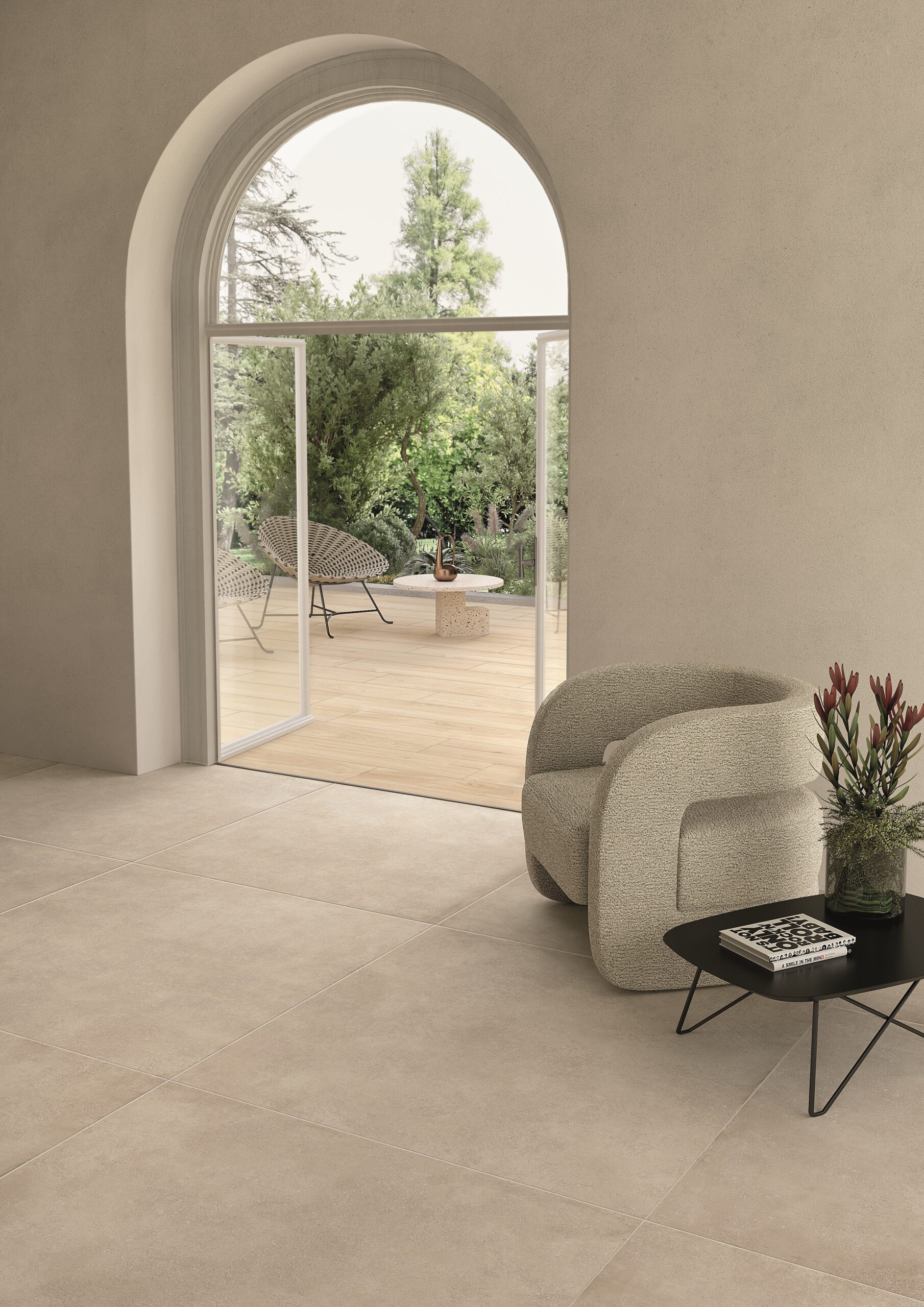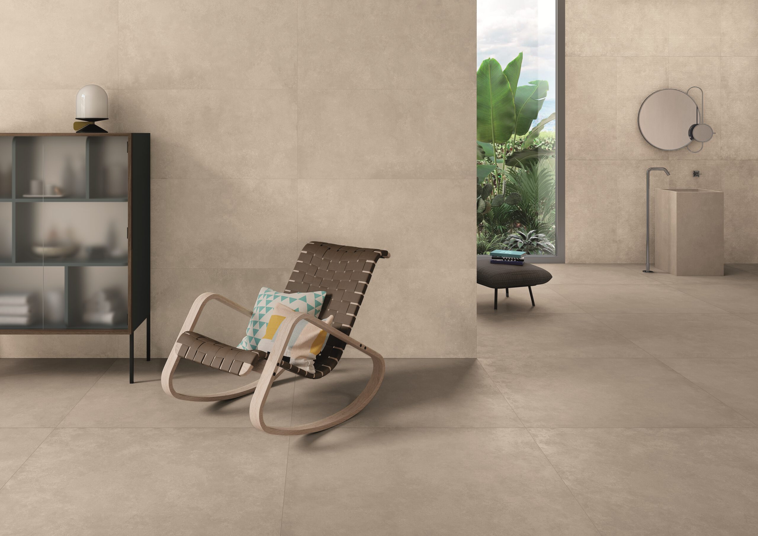 Wie Seide in den Händen, ist Goldenbrook eine taktile Kollektion, die die Wurzeln der Keramik wiederentdeckt und ihre primitive Essenz in Innenräumen, die dem Komfort und der Eleganz gewidmet sind, neu präsentiert. Sie ist eine nackte und entspannte Schönheit, die an informelle Atmosphären erinnert, in denen Unvollkommenheit in kostbare Details verwandelt wird. Die glatte Oberfläche, die sich weich anfühlt, verleiht einer Serie Körper, deren Erscheinungsbild an strukturierte Harzarbeiten erinnert und die Ästhetik der rohen Erde in Feinsteinzeug sublimiert.