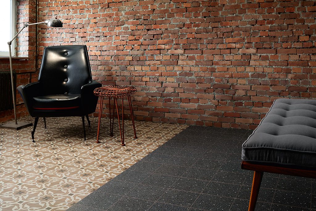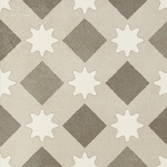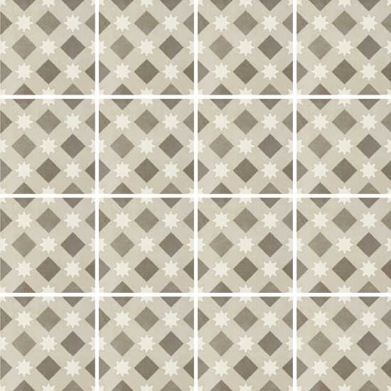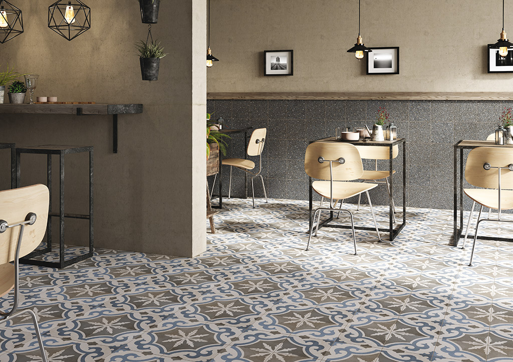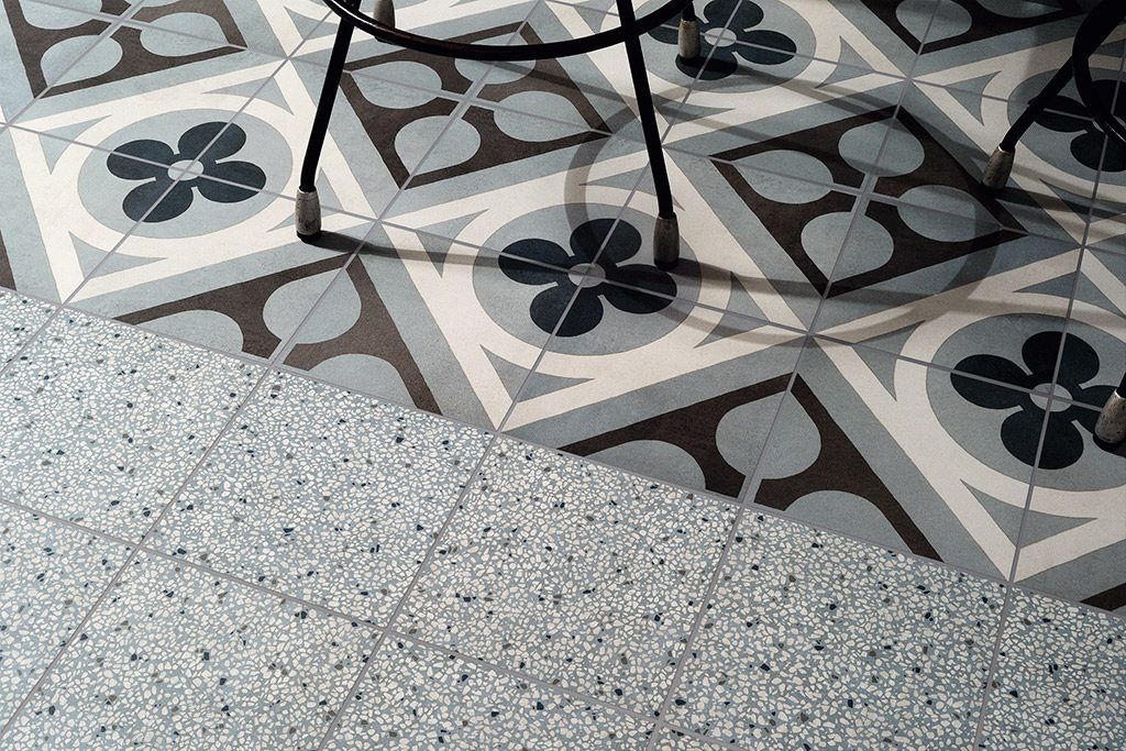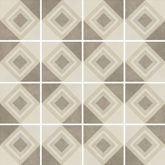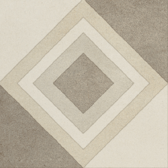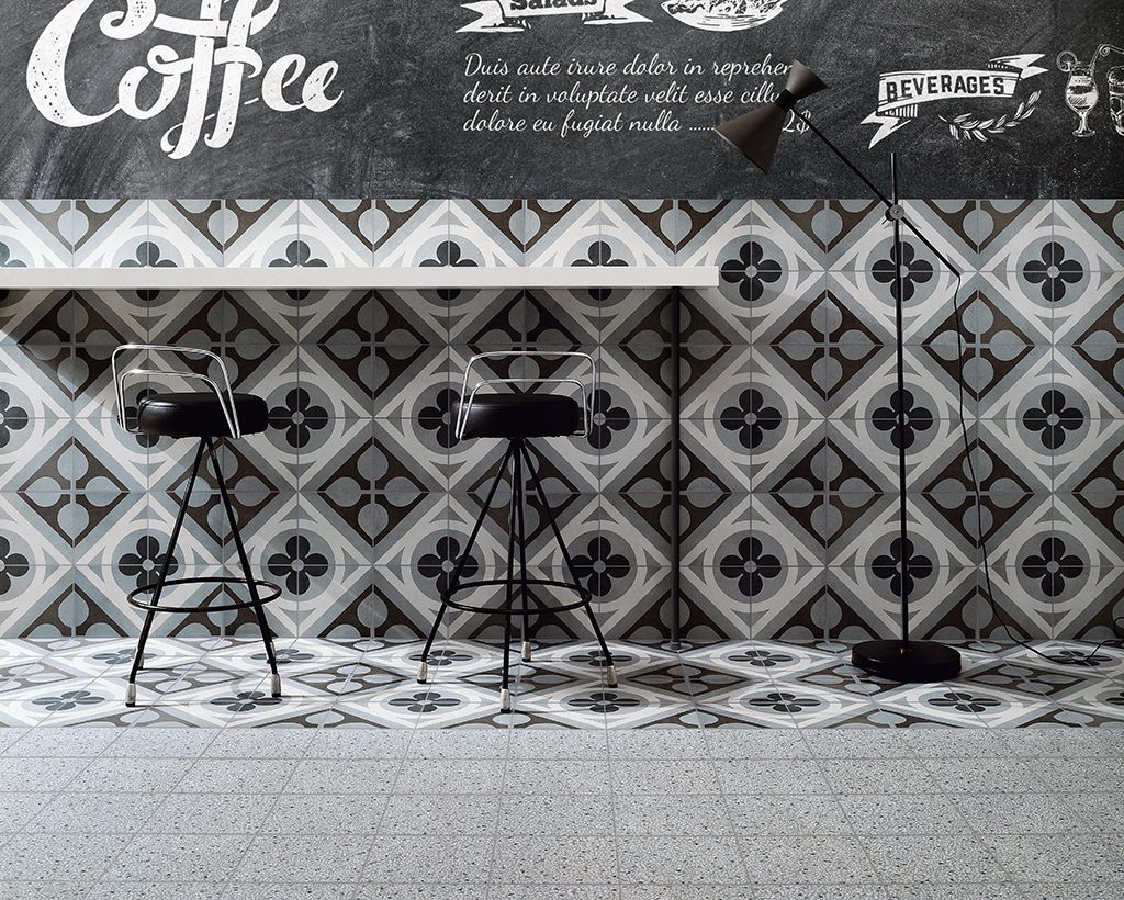 Diese Fliesen inspirieren sich an den traditionellen quadratischen oder sechseckigen Fliesen aus Zementmasse, die vorherrschenden Farben sind traditionell Grau und Ziegelrot. Zu Beginn des 20. Jahrhunderts waren Zementfliesen neben Terrazzofliesen äußerst beliebt: Sie galten als haltbar und preisgünstig, und daher wurden sie häufig für Küche und Bad, aber auch für Arbeitsbereiche verwendet. Dabei wurde die gestalterische Wirkung in vielen Fällen durch die einfache Kombination unterschiedlicher Farben erzielt. Aber gerade die Zementfliesen erlaubten auch raffiniertere Dekorlösungen, mit Blumenmustern, Friesen und Mäandern, die ganz dem damals beliebten Jugend- oder Art-Deko-Stil entsprachen. Häufig dienten sie als kühlere Alternative zum Teppich. Sie erlauben ebenso wie dieser die Räume ästhetisch zu unterteilen. Eine Neuentdeckung, die sich heute zu einem Trend entwickelt hat, der in Form von Keramikfliesen neue Akzente setzt und neue stilistische und farbliche Lösungen erlaubt.