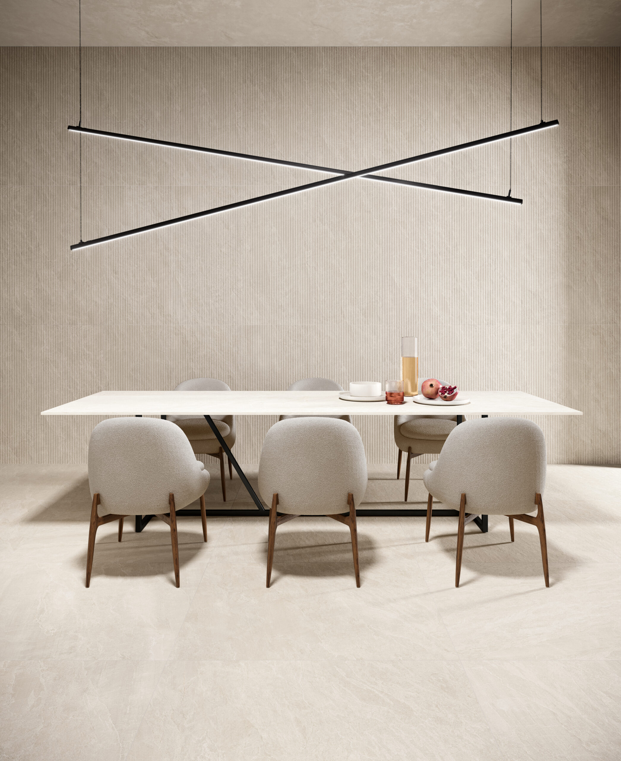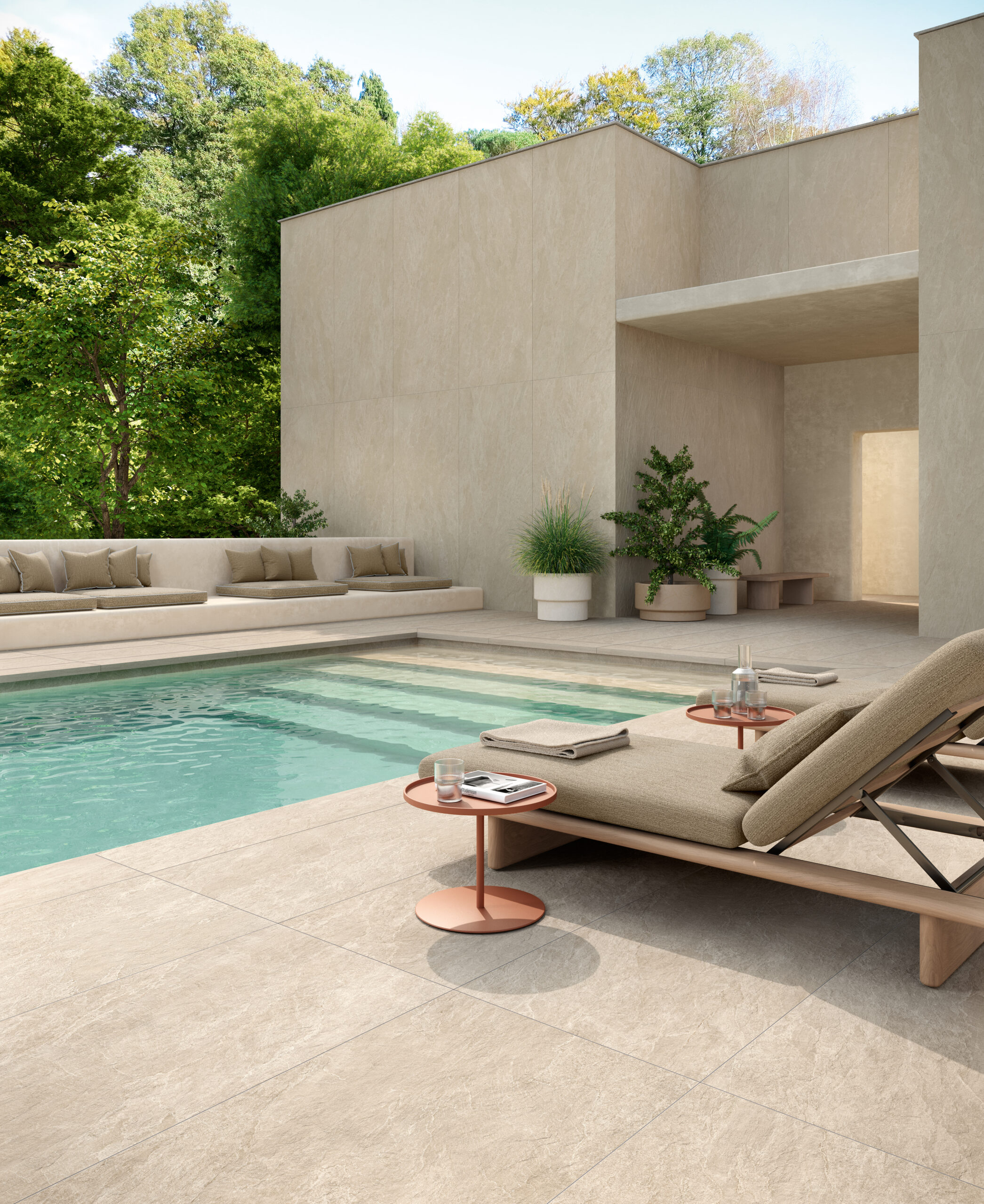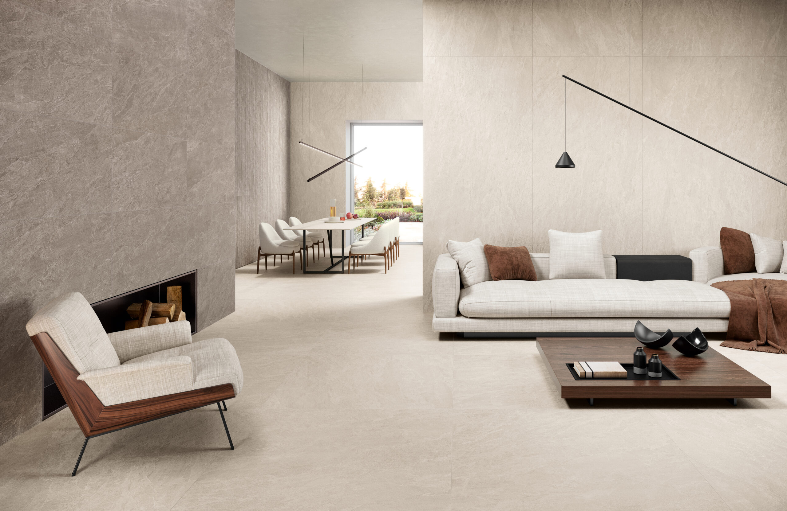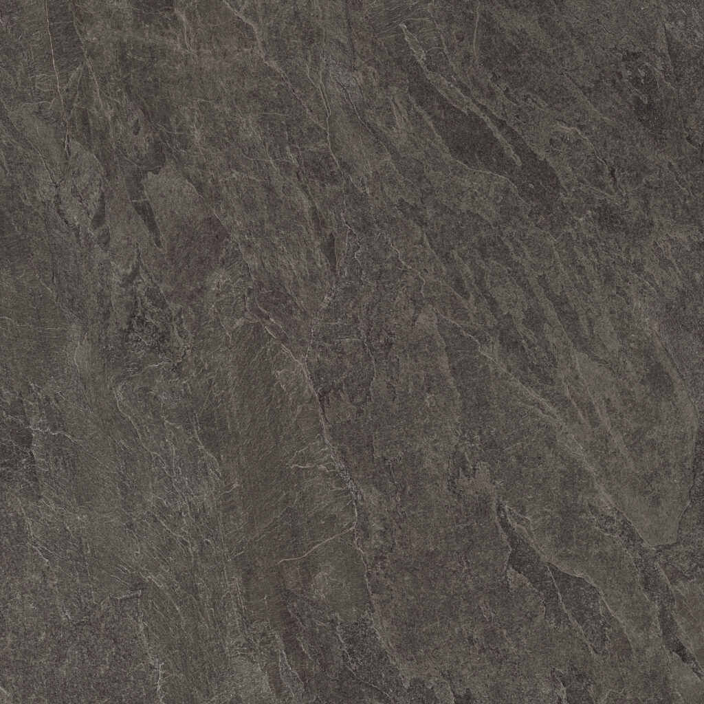 Deepflame bietet einen originellen Steinmix: eine grafisch wie chromatisch fein ausgewogene Natursteinoptik, in der dunkle Farbtöne von ligurischem Schieferstein auf warme Nuancen von Schieferstein aus Brasilien treffen, der mit organisch und natürlich wirkenden polychromen Partien aufwarten kann.