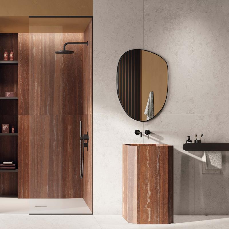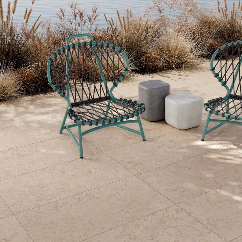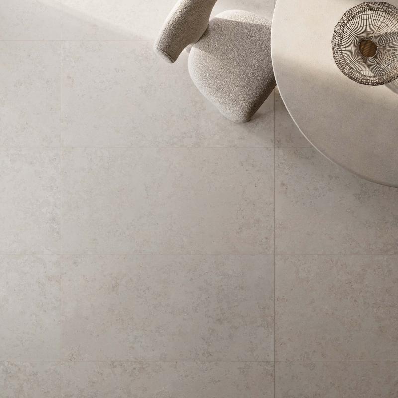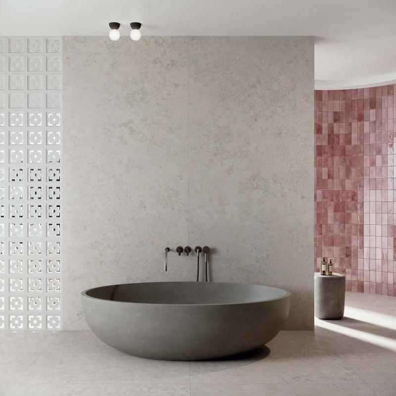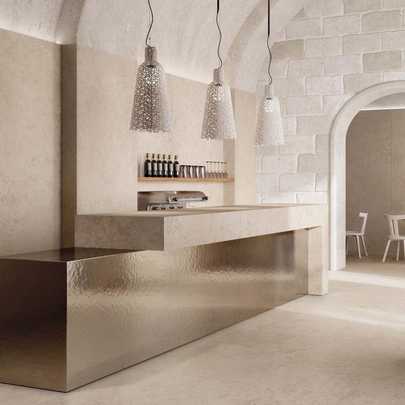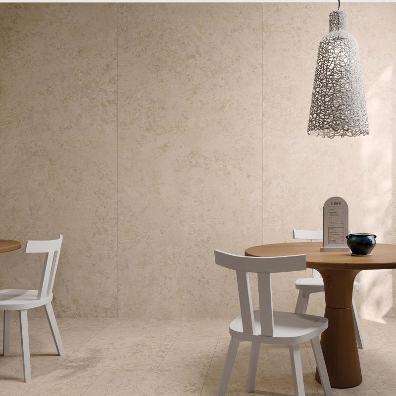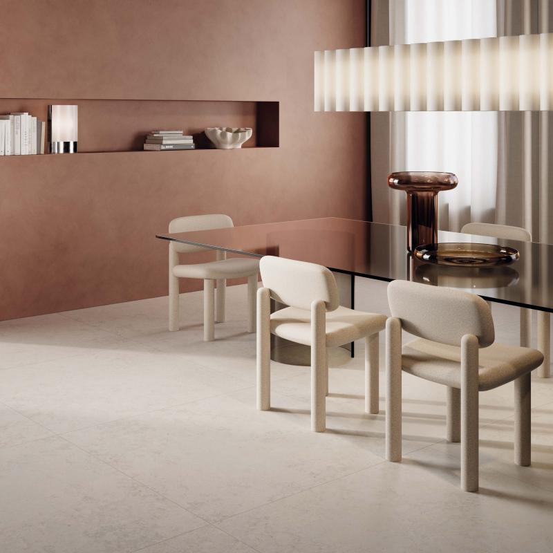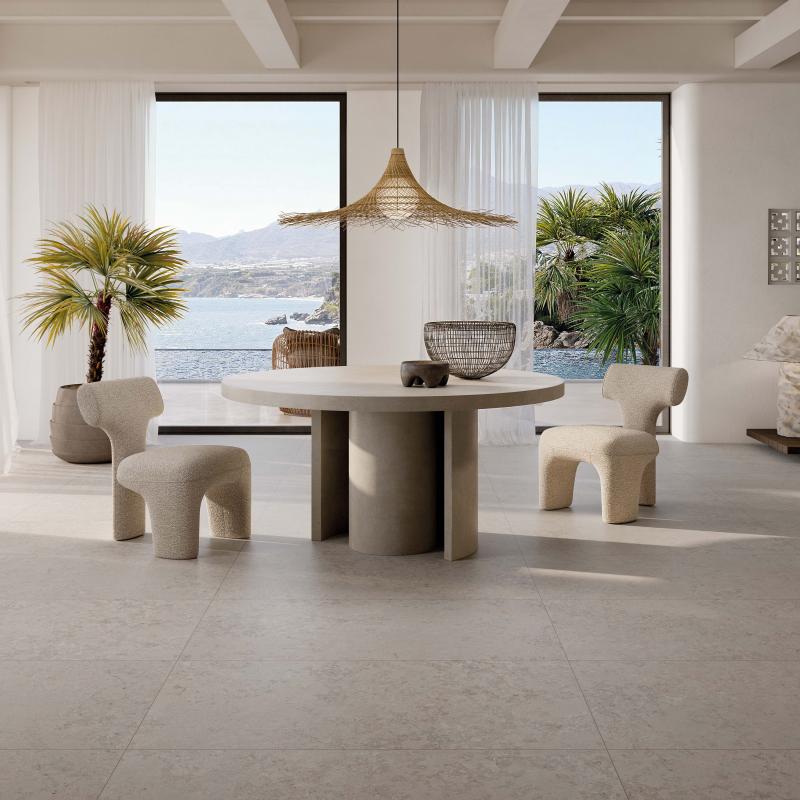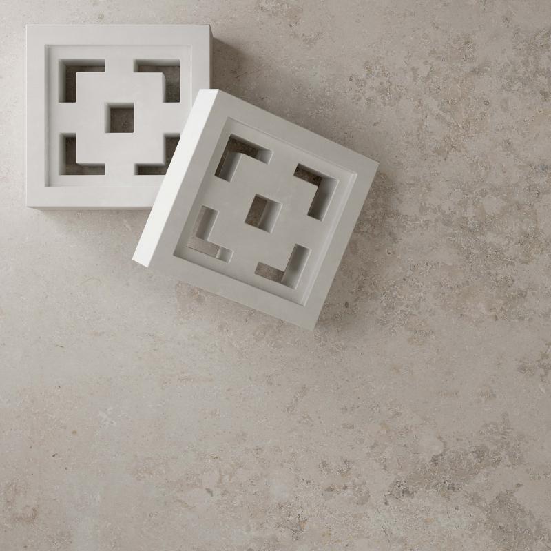 Jura, ein alpiner Kalkstein mit stark variierter Textur, wird in den Farben WHITE, SAND und ASH neu interpretiert.