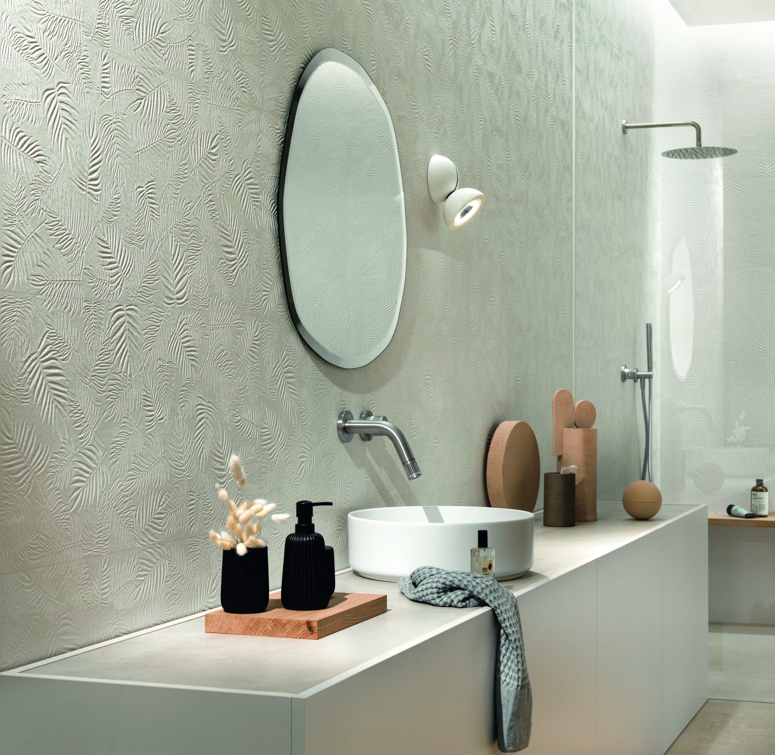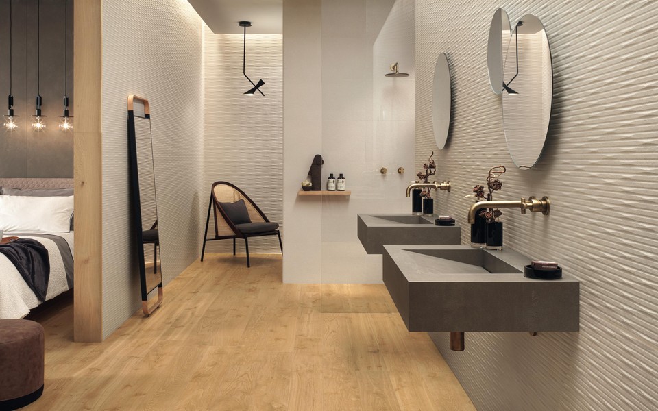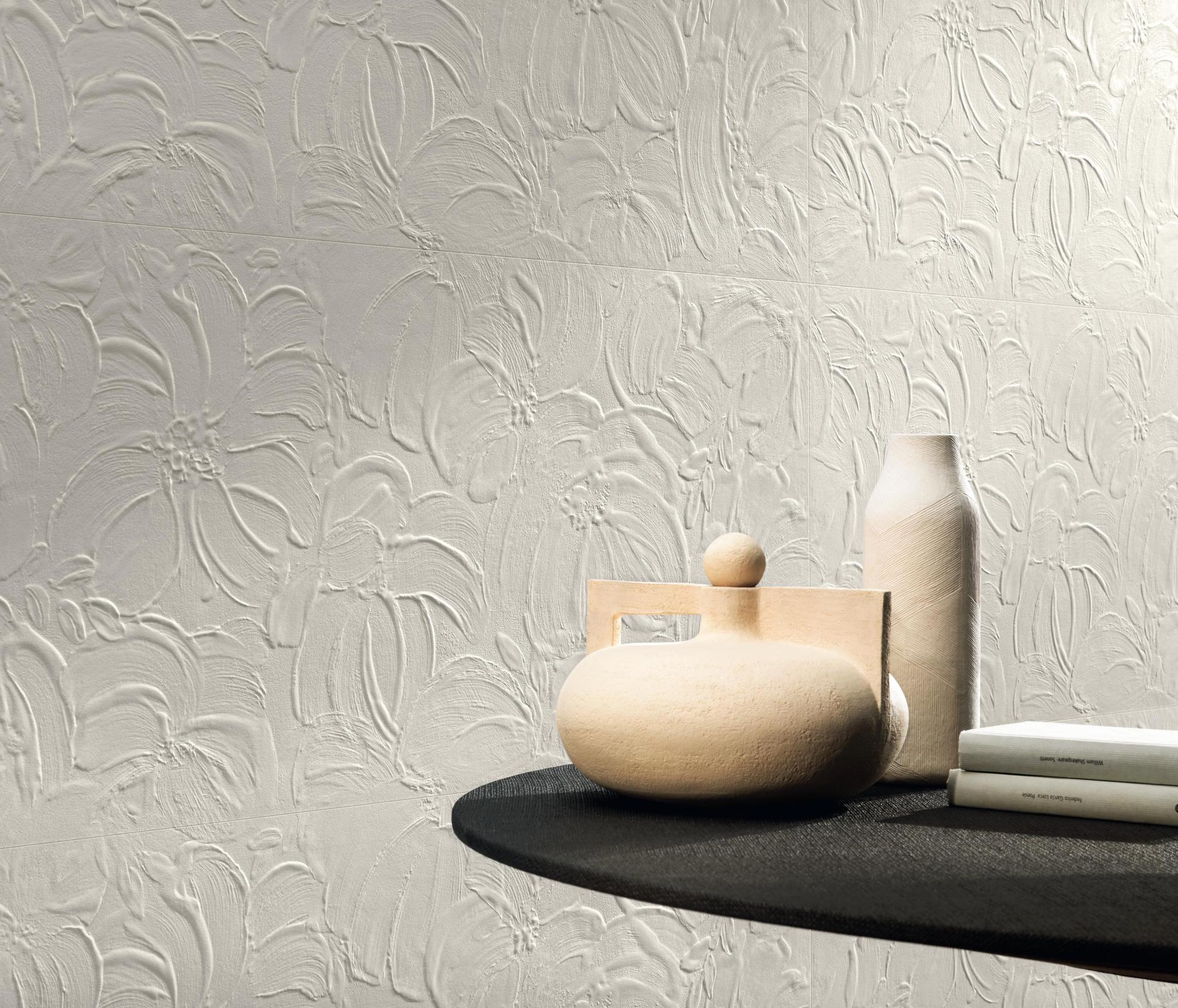 Ein Sortiment, das jeder Art von Innenraum Stil verleiht. Die natürliche Unregelmäßigkeit der Reliefs erzeugt eindrucksvolle Lichtspiele, die ein schlichtes Innendesign von starker optischer Wirkung entstehen lassen.