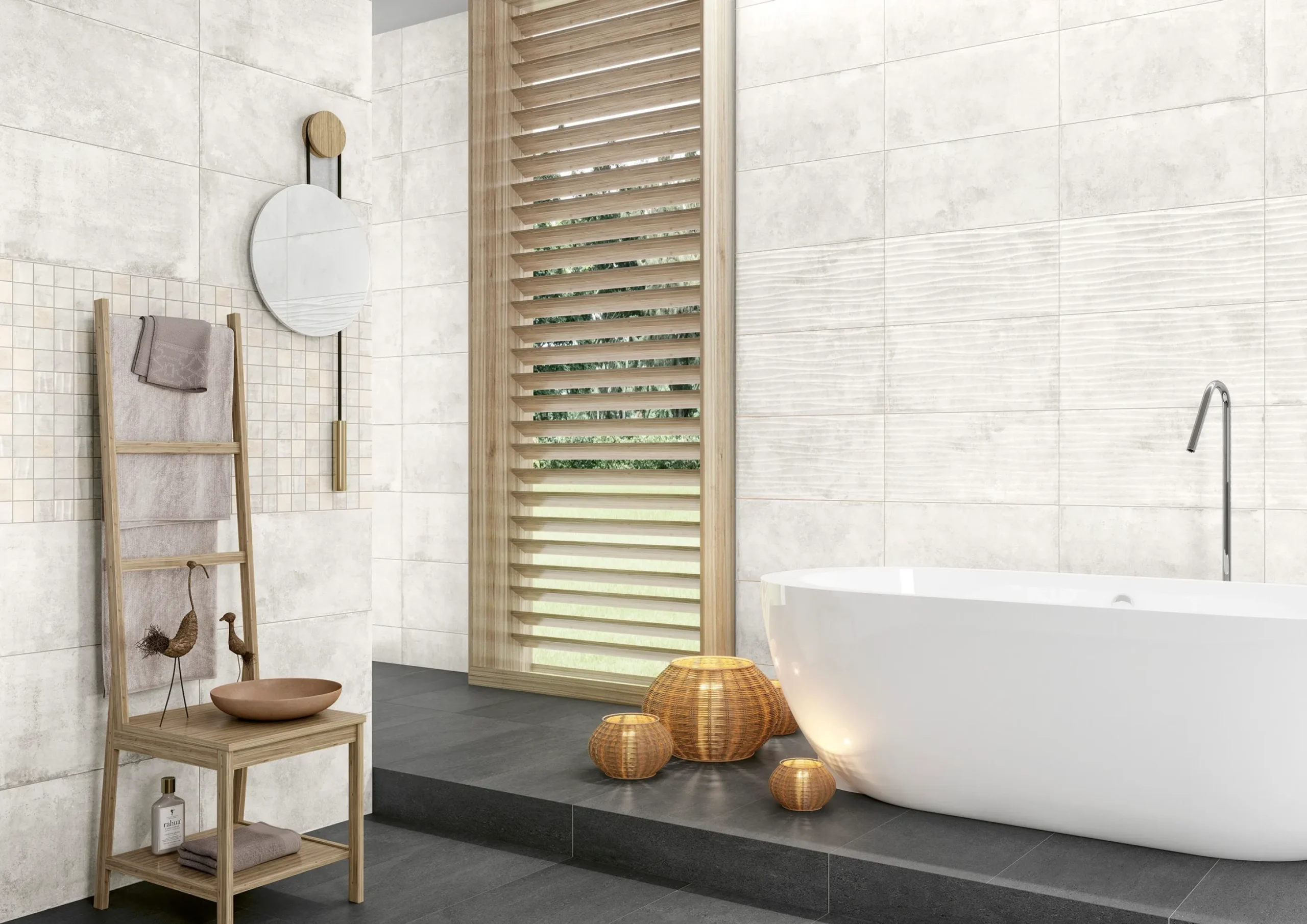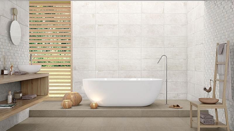 Wandfliesen in der Nachahmung von Beton.
